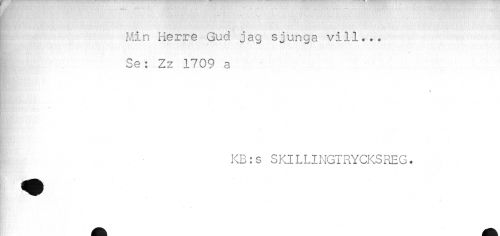 //// H" //// I Min Herre Gud jag sjunga vill... //// R ¦ k //// j Se: Zz 1709 a //// KB:s SKILLINGTRYCKSREG. ////