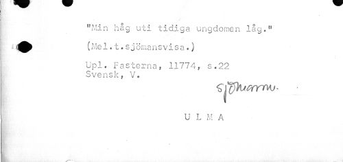 //// * ' "Min håg uti tidiga ungdomen låg." //// (Mel. t•sjömansvisa*) //// Upl* Fasterna, 11774, s.22 Svensk, V» //// ^^jfiTTÅJ^ //// I U L M A //// • - //// ii , ////