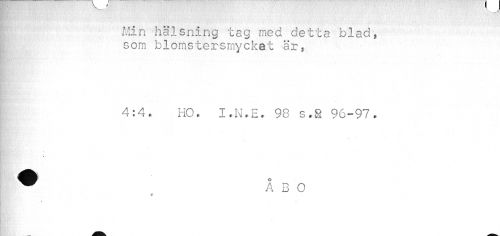 //// UKV IJ //// Min hälsning tag med detta blad, som blomstersmyckat är, //// P //// - //// 4:4. HO. I.N.E. 98 s.8 96-97. //// ¦1 : //// ¦ //// : ^ ÅBO //// ¦P' ////
