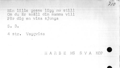 //// //a //// Min lille gosse ligg nu still Om du är snäll din mamma vill För dig en visa sjunga //// C Q O ? « //// • I //// I //// I //// 4 str. Vaggvisa //// s //// H ARBE MS SVA KOP //// I ////