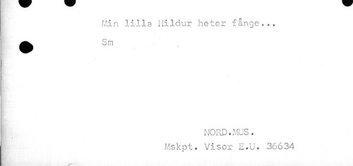 //// Min lilla Hildur heter fånge..» //// • Sm //// ¦ //// »i' i //// NORD.MUS. Mskpt. Visor E.U. 36634 ////