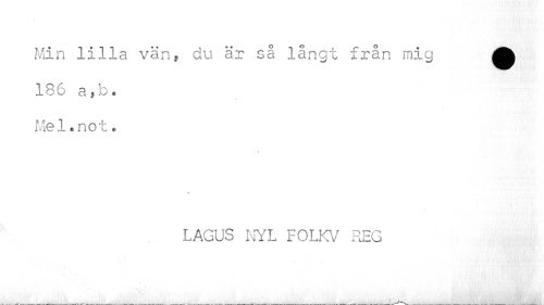 //// Min lilla vän, du är så långt från mig ^ //// 186 a,b. Mel.not. //// # //// LAGUS NYL FOLKV REG ////
