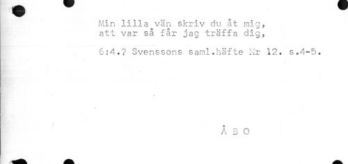 //// m ¦ ^ //// Min lilla vän skriv du åt mig, //// att var så får jag träffa dig, //// ¦ • //// 6:4.? Svenssons saml.häfte Nr 12. s.4-5. //// > //// ÅBO //// ^fc Mm ////