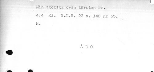 //// I Min största ovän törsten är. //// I 4:4 Ki, S.L.S. 23 s. 148 nr 65. //// N. //// ÅBO //// wmr ////