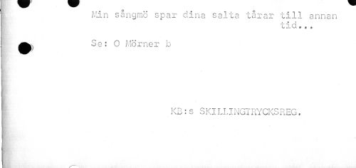 //// I Min sångmö spar dina salta tårar till annan //// i c i G « t • //// Se: O Mörner b //// KB:s SKILLINGTRYCKSREG. //// m , * ////