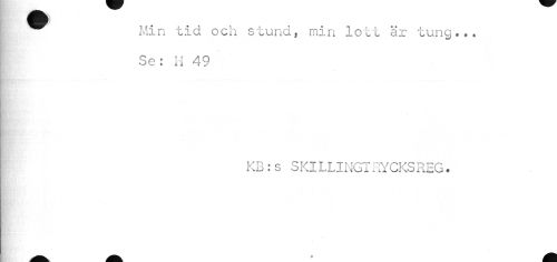 //// V w //// [ Min tid och stund, min lott är tung... //// I Se: H 49 //// 1 i //// | KB:s SKlLLINGTRYCKSREG. ////