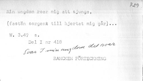 //// Min ungdom roar mig att sjunga, //// i //// (fastän sorgent till hjertat mig går)•.• ! //// i //// W. 3.4? s. //// Del I nr 418 //// RANCKEN FÖRTECKNING ! //// I ////
