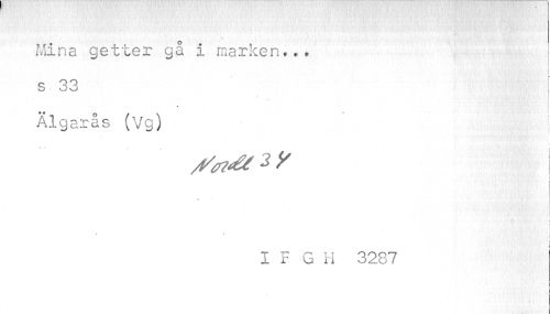 //// Mina getter gå i marken... s 33 //// Älgarås (Vg) //// i //// i- //// I //// i i //// IF G Ii 3287 //// *t | ////
