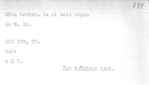 //// fil //// Mina herrar» ha ni sett vipan No W. 16. //// SLS 129, 22. //// Vals s D 5. //// ÅBO SJÖBERGS SAML. ////