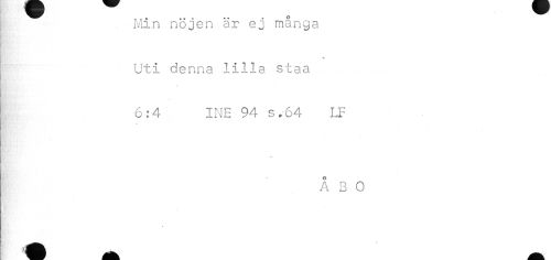//// Min nöjen är ej många //// ¦K //// Uti denna lilla staa 6:4 INE 94 s.64 LF //// ÅBO //// É WL //// M fl M ////