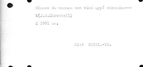 //// I ^^ Minnes du mannen som stod uppå stranden---- //// ; £(J«H.Chronvall) //// ¦ //// [ E 1901 nn; //// KB:s SKILL.-TR. //// v ////