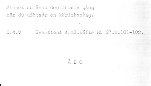 //// Minnes du ännu den första gång när du diktade en kärlekssång. //// 9 ! //// 6:4.? Svenssons saml.häfte Nr 27.s.101-102. //// ÅBO //// k ////