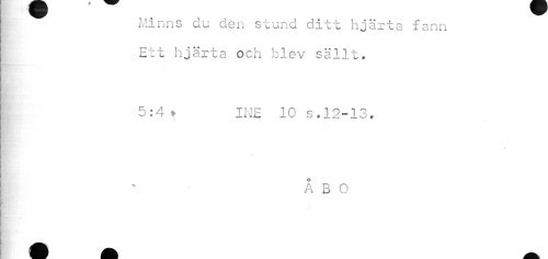 //// Minns du den stund ditt hjärta fann Ett hjärta och blev sällt. //// 5:4 » INE 10 s.12-13, //// ÅBO ////