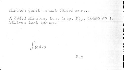 //// Minuten ganska snart försvinner... //// A 494:2 Minuten, kom. insp. Rtj . 10660:69 i. //// Skriven text saknas. _ //// 1 //// m ¦ //// J t^o i //// L L //// R A | //// i //// k i ////