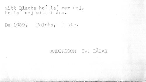 //// Mitt Blacka ho' la/ ner sej, ho la' sej mitt i åna« //// Da 1089, Polska, 1 str. //// ANDERSSON SV. LÅTAR ////