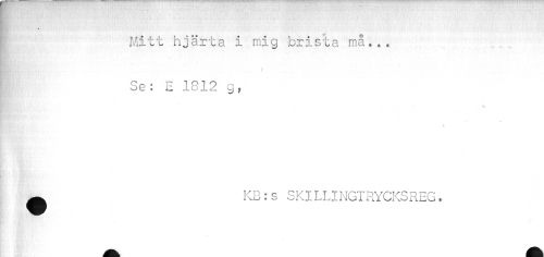 //// 1 Mitt hjärta i mig brista må,., //// | I //// Se: E 1812 g, j ^ KB :s SKILLINGTRYCKSREG. ////