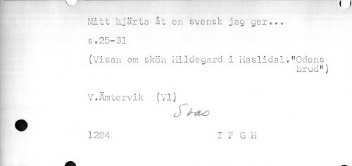 //// Il' Mitt hjärta åt en svensk jag ger... //// \ s ,25-31 //// (Visan om skön Hildegard i Haslidal. "Odens //// brud") //// V.Ämtervik (VI) //// C j //// 1284 I F G H ////
