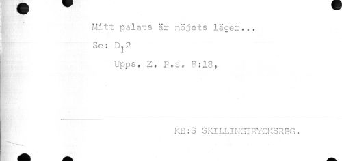 //// Mitt palats är nöjets läger,., Se: Dj2 //// I Upps. Z. P.s. 8:18» //// Mp //// ¦ //// KB : S S KlLLINGTRYCKSREG. ////