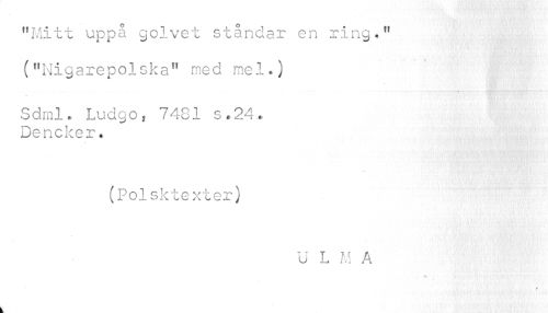 //// "Mitt uppa golvet ståndar en ring." ("Nigarepolska" med mel.) //// Sdml. Ludgo, 7481 s.24.. Dencker. //// (Polsktexter) //// U L M A //// k ////