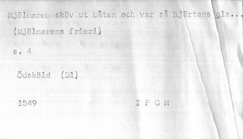 //// Mjölnaren sköv ut båten och var så hjärtans fela... //// I //// (Mjölnarens frieri) 1 //// s. 4 t //// | ? I ...I //// Ödsköld (Dl) //// 1549 IFGH //// . //// I //// Wa i \ ////