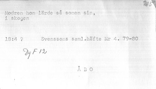 //// m ~ \i //// Modren hon lärde så sonen sin, i skogen //// 1 ! //// 18:4 ? Svenssons saml.häfte Nr 4. 79-30 //// ÅBO //// I ////