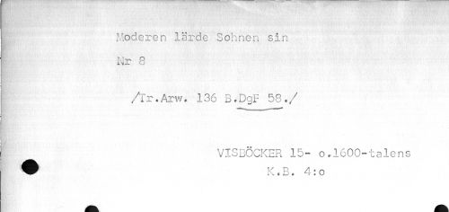 //// ft|J Moderen lärde Sohnen sin //// Nr 8 //// . //// /Tr.Arw. 136 B»DgF 58./ ^ VISBÖCKER 15- o »1600-talens ////