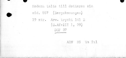 //// - ¦ ' - //// Modern talte till dotteren sin //// •sid. 557 (Bergakonungen) //// //// /19 str. Atvj* tryckt 141 B //// (G.AfzlII 1, 29) //// DGF37 //// ARW MS Vs 2:1 //// v*- //// • V- v ////