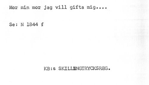 //// Mor min mor jag vill gifta mig.... Se: N 1844 f //// KB:s SKILLffiNGTRYCKSREG. ////