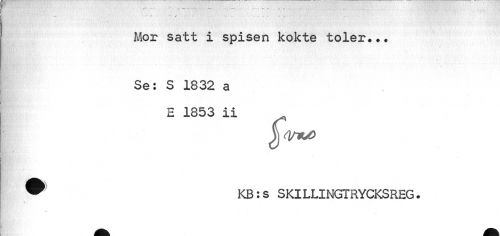 //// Mor satt i spisen kokte toler.*, //// - //// Se: S 1832 a E 1853 ii //// ¦ //// ® KB:s SKILLINGTRYCKSREG. ////
