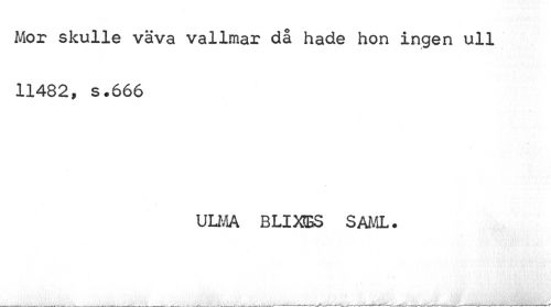 //// Mor skulle väva vallmar då hade hon ingen ull 11482, s.666 //// ULMA BLIXSES SAML. ////