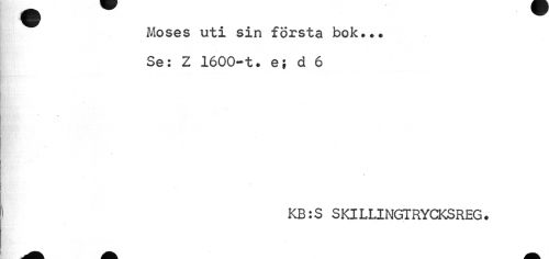//// Moses uti sin första bok... Se: Z 1600-t. ej d 6 //// « //// KB:S SKILLINGTRYCKSREG. ////