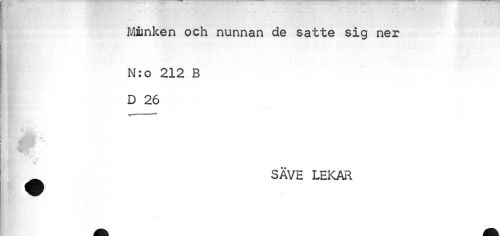 //// Minken och nunnan de satte sig ner //// N:o 212 B D 26 //// SÄVE LEKAR ////