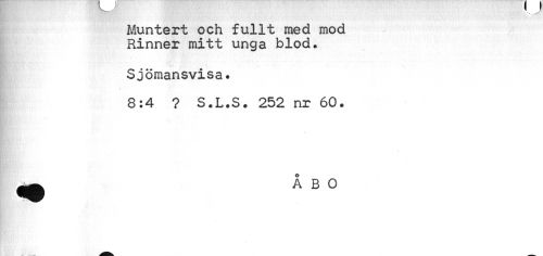 //// Muntert och fullt med mod Rinner mitt unga blod. //// Sjömansvisa. //// 8:4 ? S.L.S. 252 nr 60. //// ^ ÅBO ////