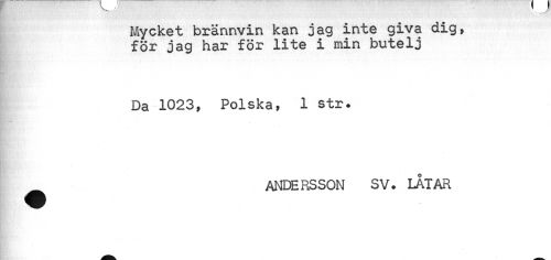 //// Mycket brännvin kan jag inte giva dig, för jag har för lite i min butelj //// Da 1023, Polska, 1 str. //// ANDERSSON SV. LÅTAR ////