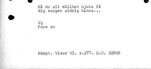 //// Må du all sällhet njuta få dig sorgen aldrig hinna*.. //// ^ Vg //// Fors sn //// Mskpt. Visor VI. s.277. E.U. 22828 ////