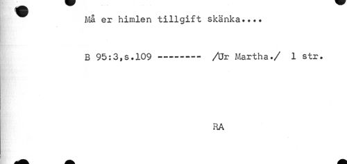 //// Må er himlen tillgift skänka.... B 95:3,5.109 --- /Ur Martha./ 1 str. //// RA ////
