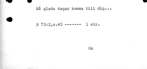 //// Må glada dagar komma till dig... B 73:2,s.43--- 1 str. //// v //// RA //// v» w'. ////