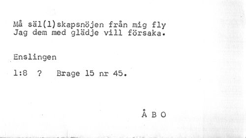 //// Må säl(l)skapsnöjen från mig fly Jag dem med glädje vill försaka* //// Enslingen //// ? //// 1:8 ? Brage 15 nr 45. //// ÅBO ////