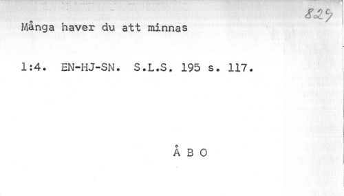 //// SÄ ^ //// Många haver du att minnas //// c //// 1:4. EN-HJ-SN. S.L.S. 195 s. 117. //// i //// i //// [ //// I //// ÅBO //// i '. • ' j ////
