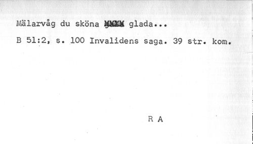 //// Mälarvåg du sköna P8&M glada... //// ? //// B 51:2, s. 100 Invalidens saga. 39 str* kom. //// > //// 1 //// ii i //// \ i //// r //// i \ c ip //// R A //// I | //// I ¦ ////