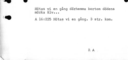 //// Mötas vi en gång därhemma bortom dödens mörka älv... //// A 16:225 Mötas vi en gång. 3 str. kom. //// RA. //// w ////