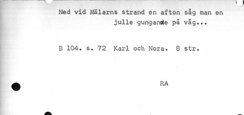 //// Ned vid Målarns strand en afton såg man en //// julle gungande på våg... //// B 104. s. 72 Karl och Nora. 8 str. ////