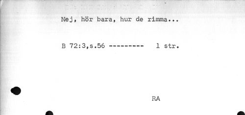//// Nej, hör bara, hur de rimma.•« //// ¦ //// * //// B 72:3,s.56---- 1 str. //// RA ////