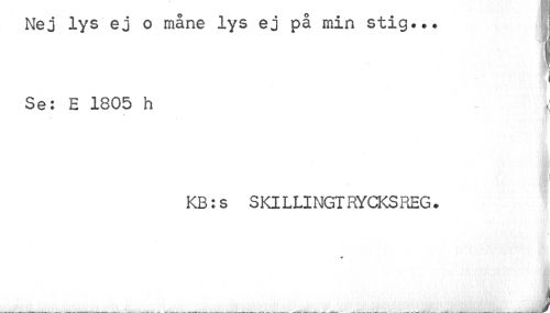 //// Nej lys ej o mane lys ej pa min stig... //// 1 //// Se: E 1805 h //// i I //// i //// ¦ //// KB:s SKILLINGT RYCKSREG. //// 9 //// •r //// .... -te . i ////