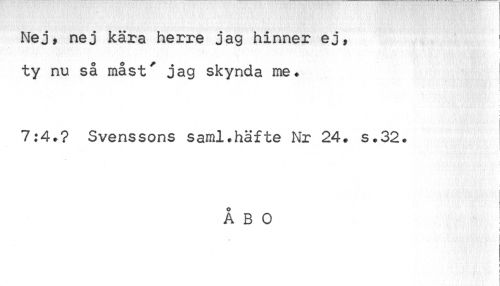 //// Nej, nej kära herre jag hinner ej, ty nu så måst' jag skynda me. //// i f //// I //// 7:4.? Svenssons saml.häfte Nr 24. s.32. //// o //// A B 0 //// i //// i ! ////
