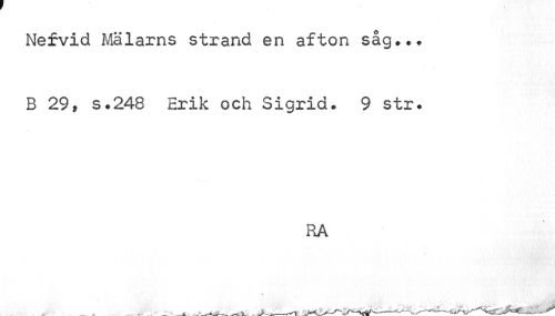 //// Nefvid Mälarns strand en afton såg... B 29, s.248 Erik och Sigrid. 9 str. //// RA //// -. .. > . _ ^ ____ w ////