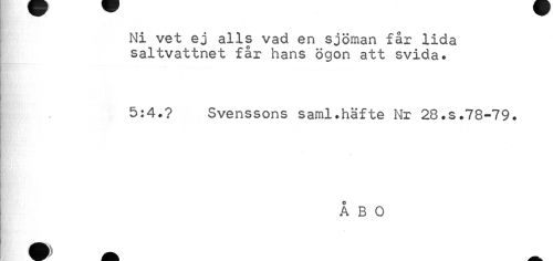 //// Ni vet ej alls vad en sjöman får lida saltvattnet får hans ögon att svida. //// 5:4.? Svenssons saml.häfte Nr 28.s.78-79. //// ÅBO ////