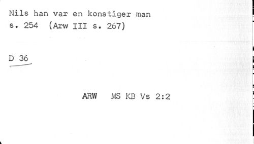 //// Nils han var en konstiger man ! //// s. 254 (Arw III s. 267) //// i //// D 36^ i //// ¦ //// ARW MS KB Vs 2:2 ! //// i //// i ////