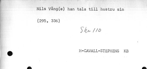 //// . //// Nils Vång(e) han tala till hustru sin (295, 336) //// //o //// 't //// q H-CAVALL-STEPHENS KB //// i- , ////