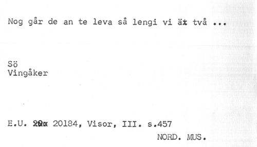//// Nog går de an te leva så lengi vi ät två ... //// SÖ //// Vingåker //// E.U. 2S« 20184» Visor» III. s.457 //// NORD. MUS. ////